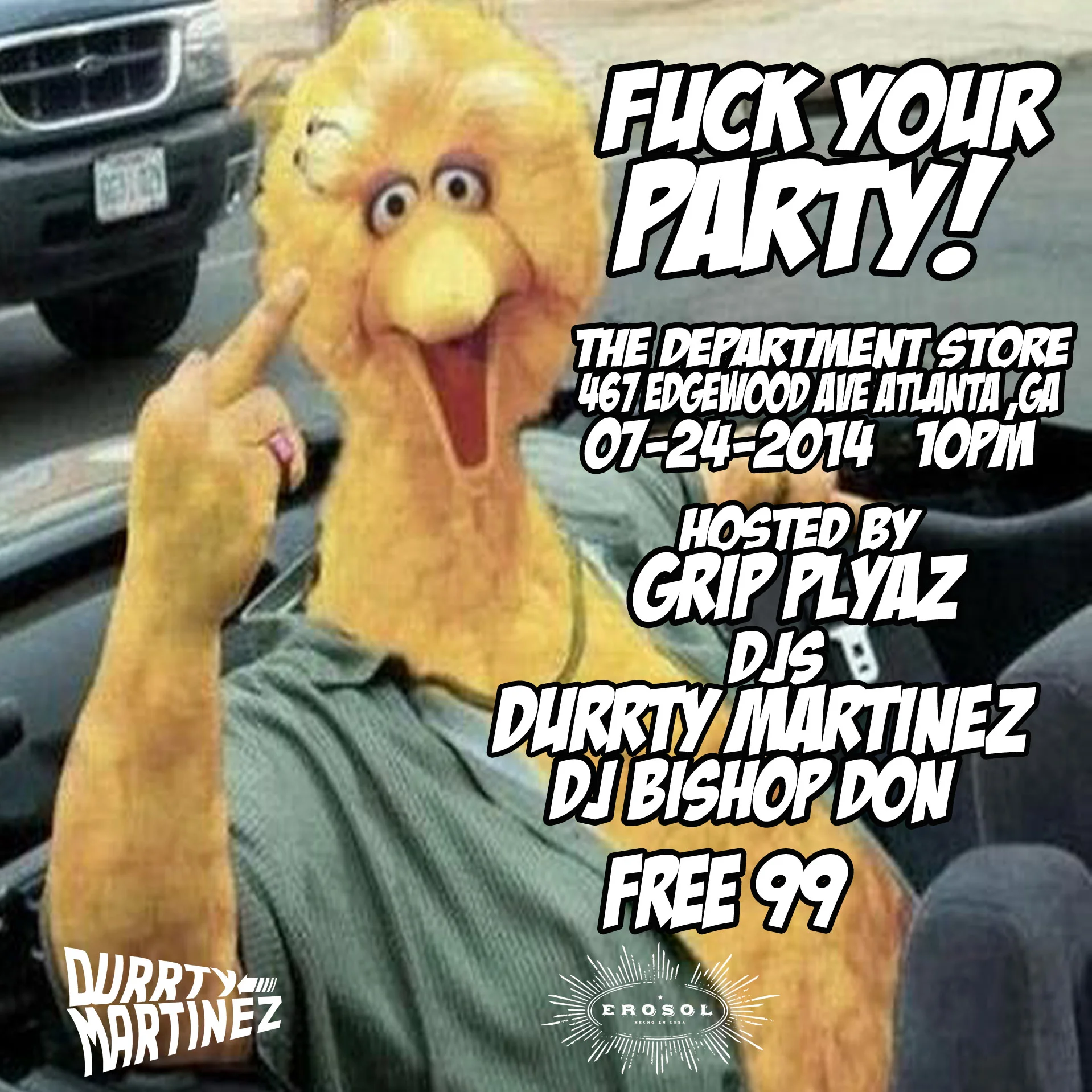 #FUCKyourParty Thursday, July 24, 2014 10:00 PM 11:00 PM 22:00 23:00 The Department Store 467 Edgewood Ave SE Atlanta, GA, 30312 United States (map) Google Calendar ICS