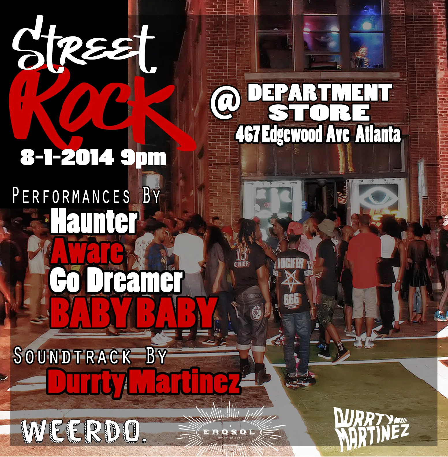 Street Rock Friday, August 1, 2014 9:00 PM 10:00 PM 21:00 22:00 Street Rock 467 Edgewood Ave SE Atlanta, GA, 30312 United States (map) Google Calendar ICS